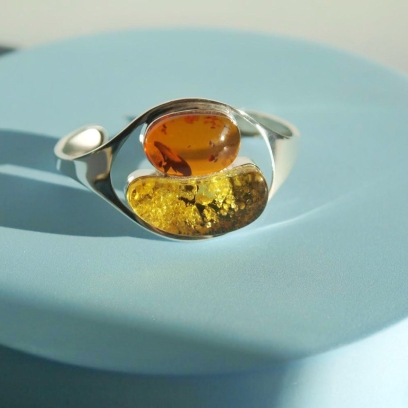 Bransoleta srebrna regulowana z kolorowym bursztynem no 1