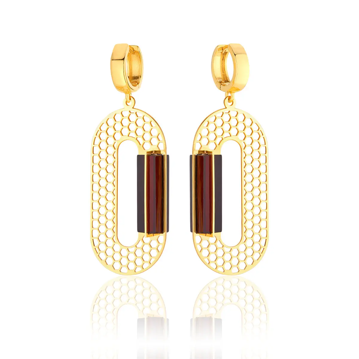 Kolczyki wiszące srebrne pozłacane z wiśniowym bursztynem Tor