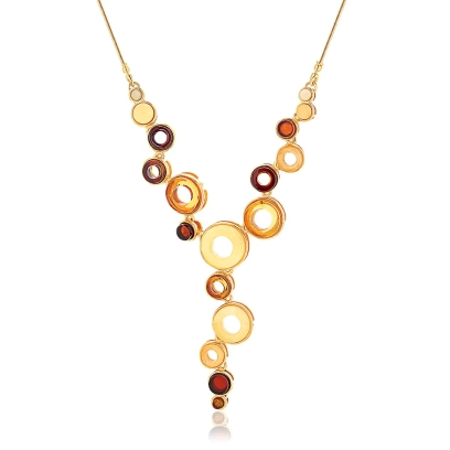 Naszyjnik srebrny pozłacany z kolorowym bursztynem Circle