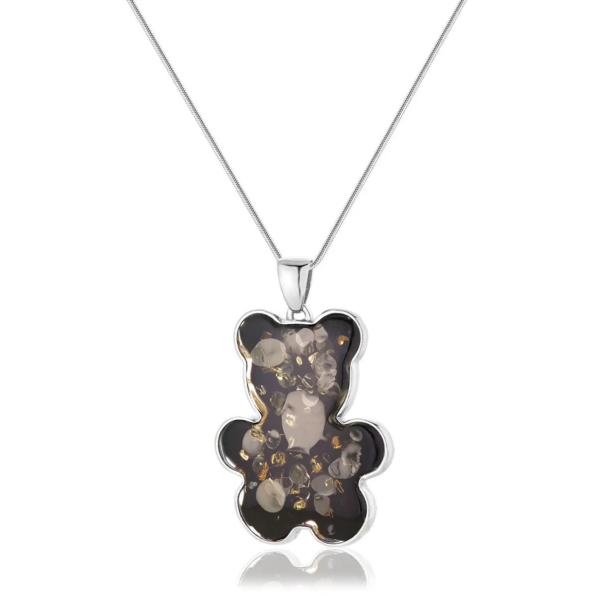 Wisiorek srebrny miś z bursztynem big Teddy Bear II
