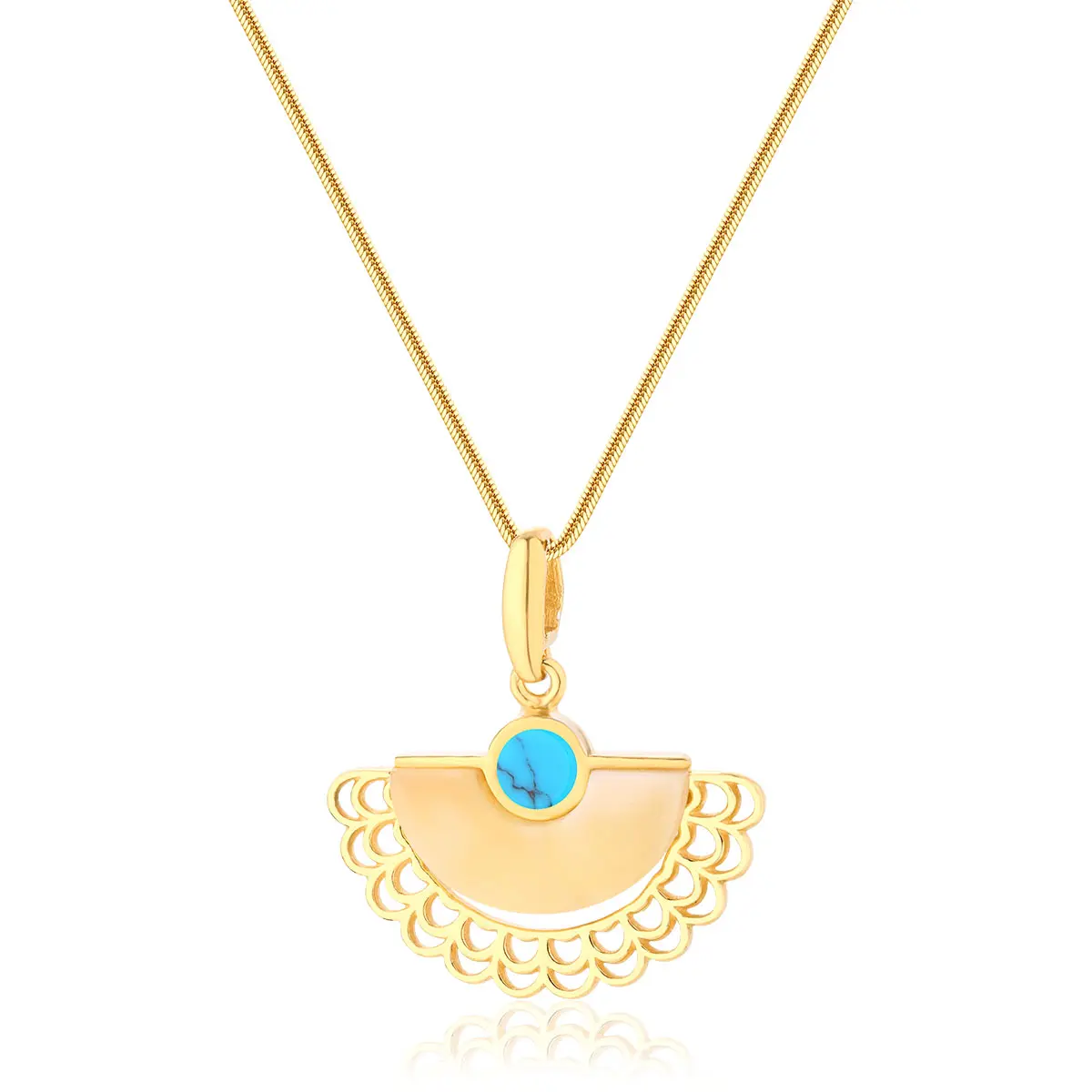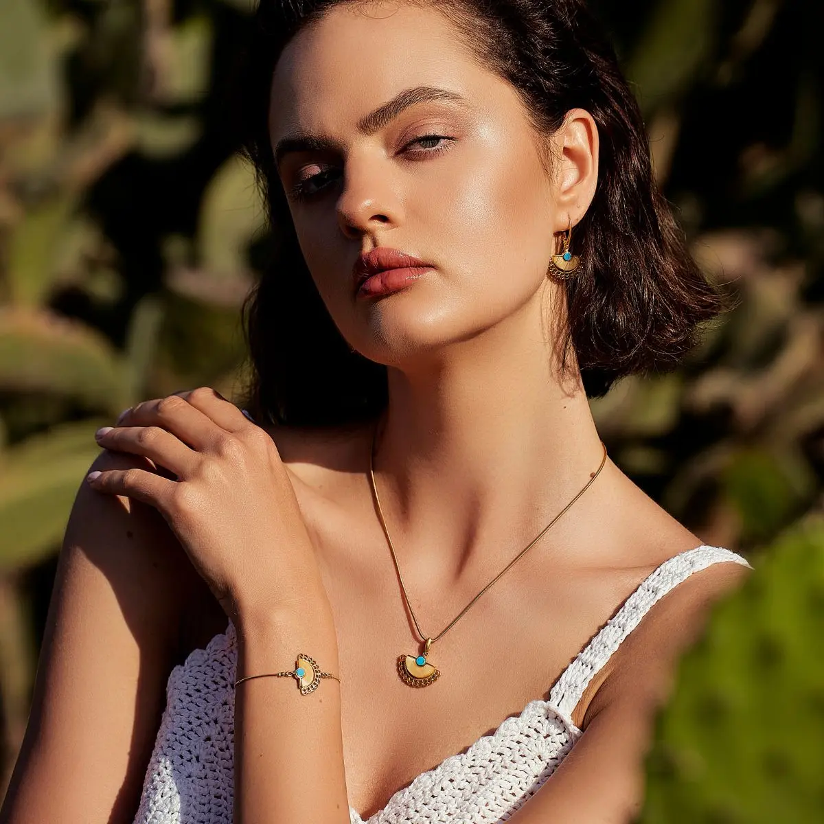 Zawieszka srebrna pozłacana półksiężyc z mlecznym bursztynem i turkusem