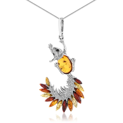 Zawieszka srebrna wiewiórka z bursztynem Red Squirrel