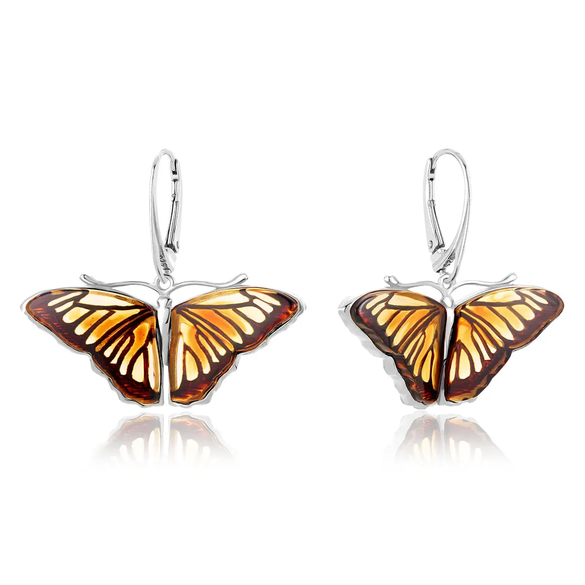 Broszka srebrna pozłacana motyl z bursztynem mini Butterfly Breath