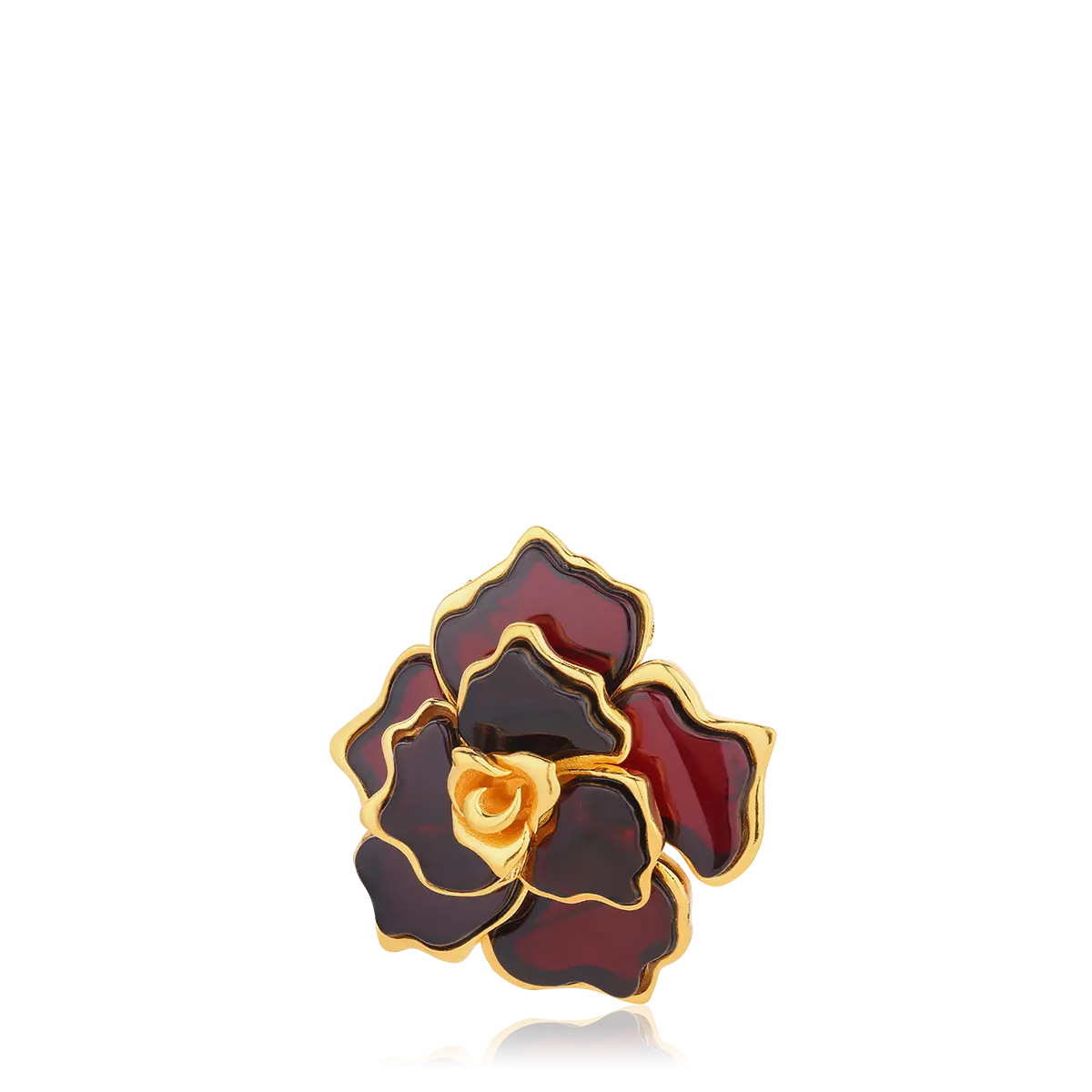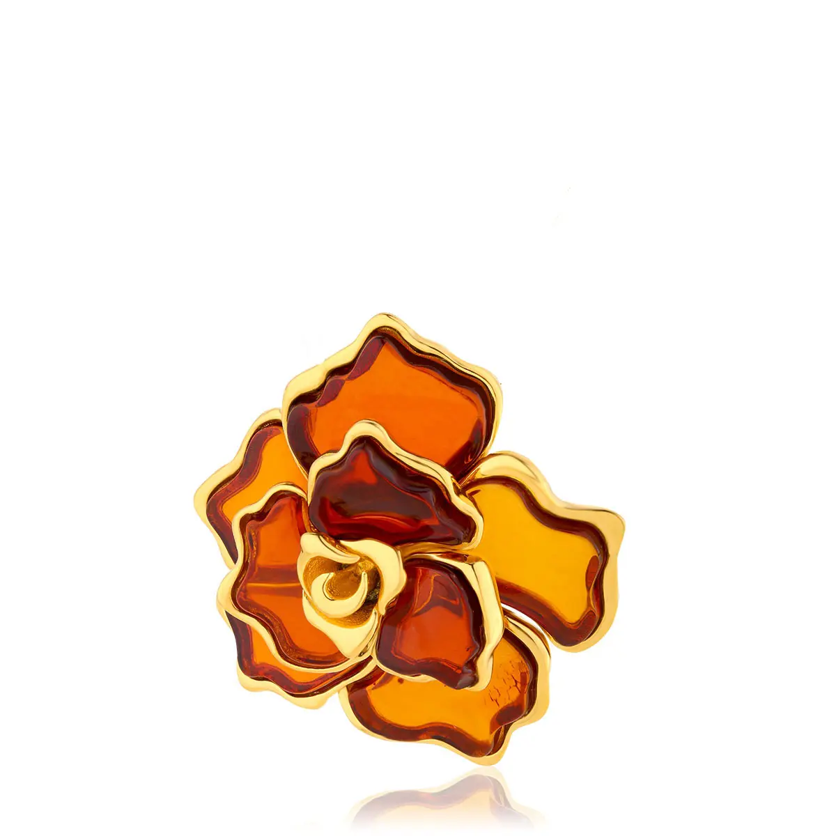 Broszka srebrna pozłacana róża z bursztynem Rosebud