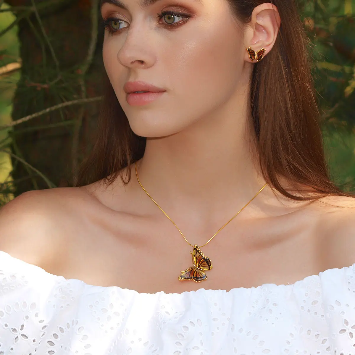 Kolczyki Butterfly Kiss założysz jeśli lubisz ozdoby, które łączą w sobie odrobinę uroku i odrobinę szaleństwa. Wolna i piękna niczym motyl, nie boisz się przecież akcentów zwracających na siebie uwagę. Szczególnie, że te piękności zawierają ponadczasową, pozłacaną podstawę, wypełnioną naturalnym, ręcznie uformowanym na obraz prawdziwego motyla (morpho menelaus) jantarem. Nie ma ograniczeń, jeśli połączysz te piękności z pasującymi do nich, innymi elementami jak naszyjnik, czy bransoletka.