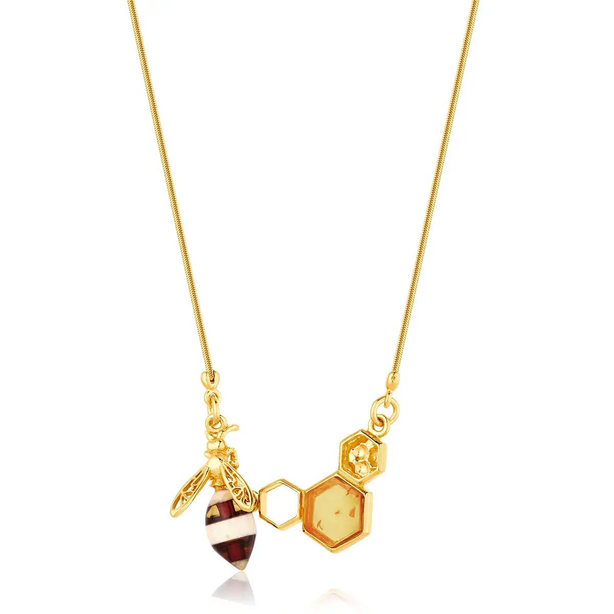 Naszyjnik srebrny pozłacany pszczoła z bursztynem Queen Bee