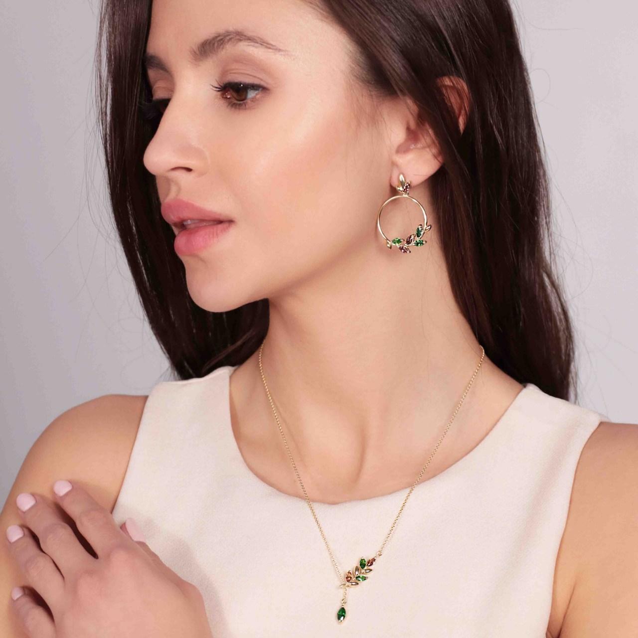 256,00 złNaszyjnik Linda w formie krawatki wykonany ze srebra próby 925 dodatkowo pozłacany 24 karatowym złotem przywodzi na myśl gałązkę drzewa, z którego spada zielony listek. Całość prezentuje się uroczo. Niesamowicie mieniące się, ręcznie zakute cyrkonie w brązowo-zielonych odcieniach oraz pozłacane srebro łańcuszka, to nawiązanie do natury, jej piękna, które budzi się na wiosnę. Naszyjnik przywodzi na myśl pozytywne emocje, pełne delikatności i subtelnych organicznych form. Jest pełen radości i wdzięku, daje możliwość tworzenia niepowtarzalnego stylu.