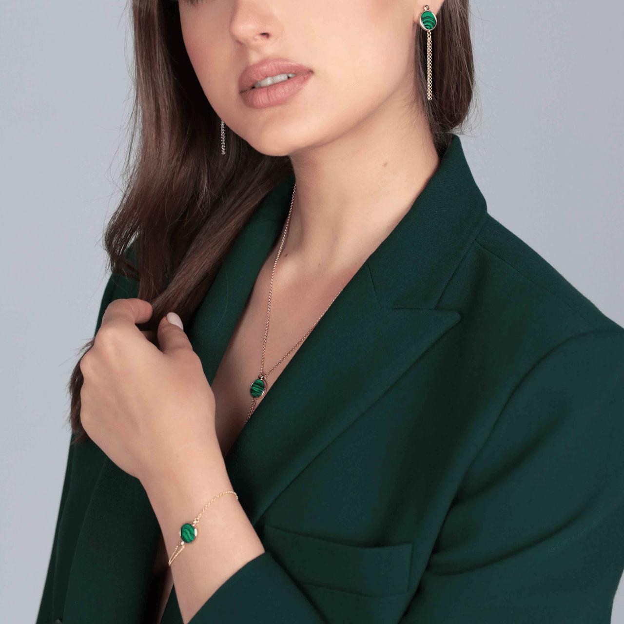 Naszyjnik srebrny pozłacany z malachitem Honey Eye