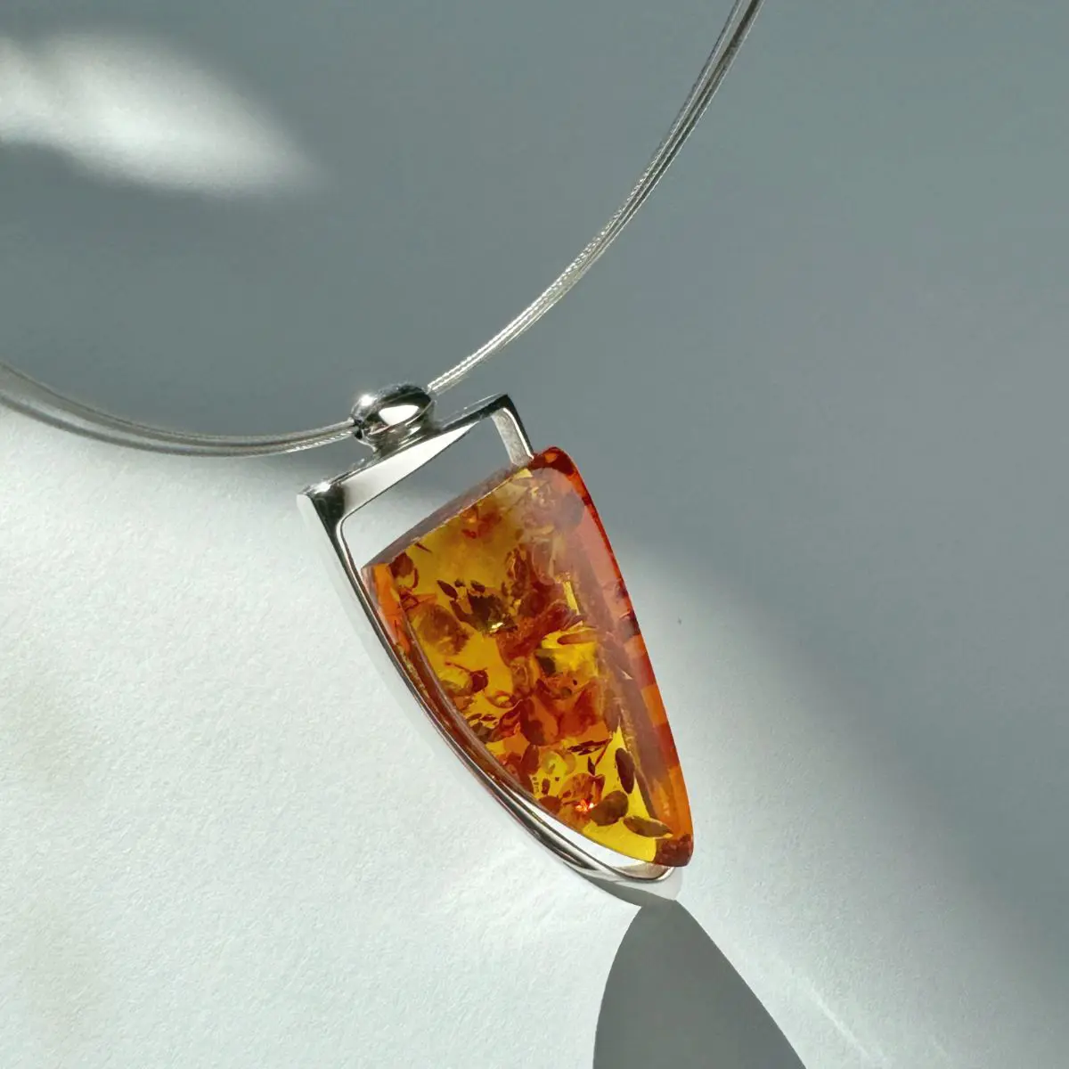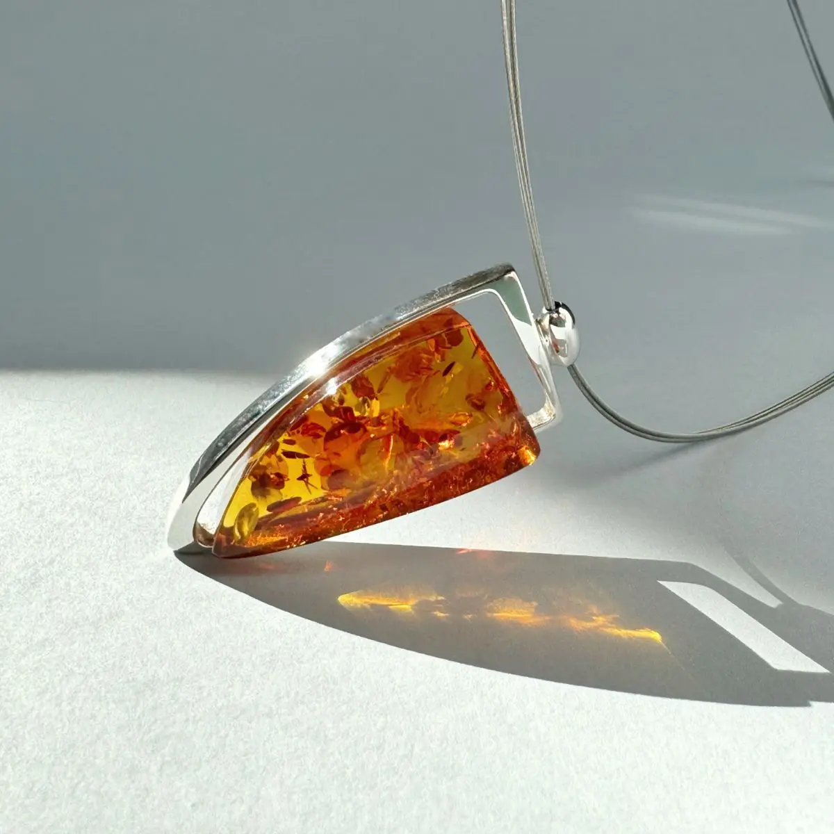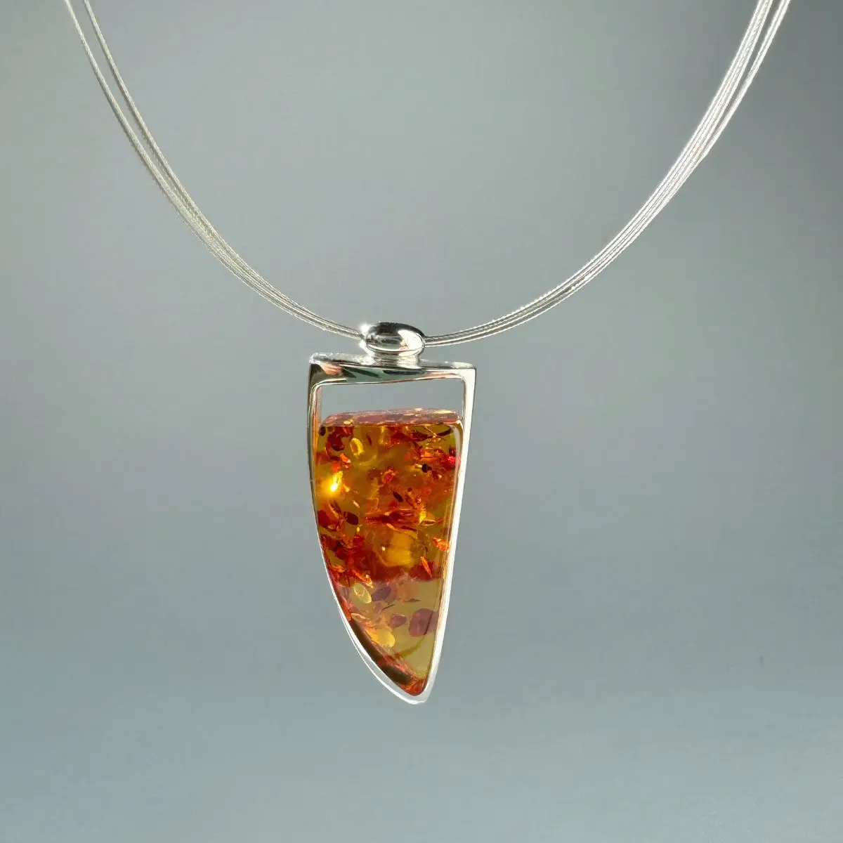 Naszyjnik srebrny z koniakowym bursztynem no 13