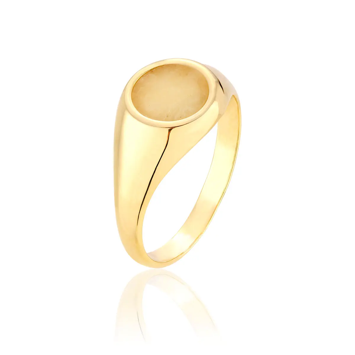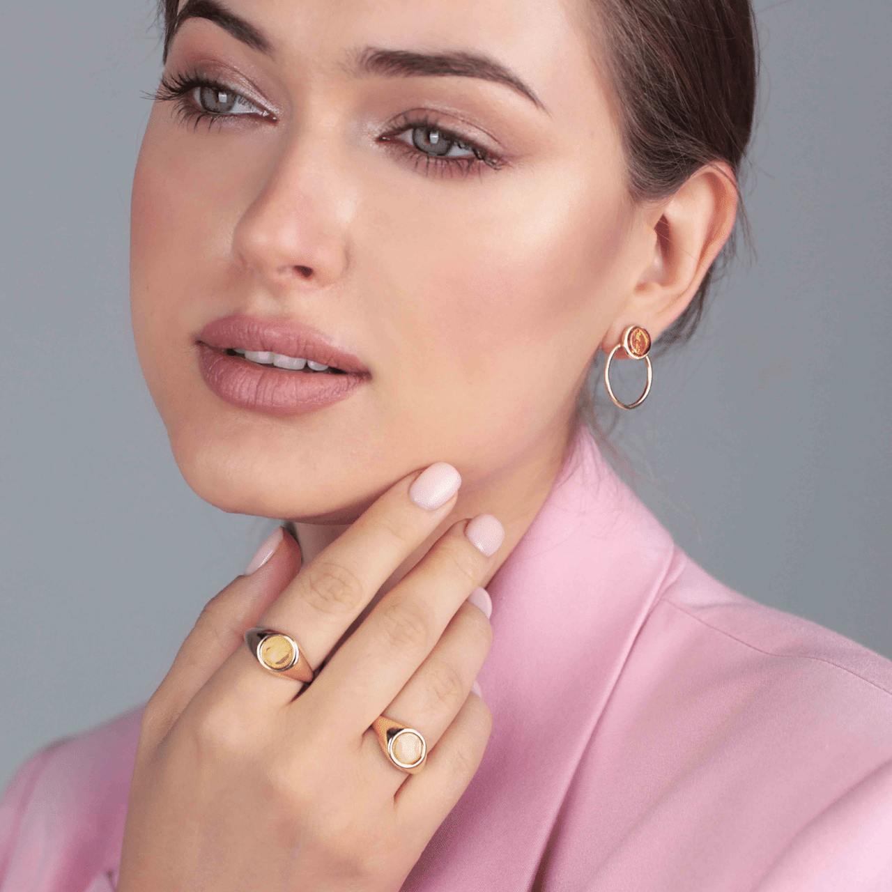Sygnet srebrny pozłacany z mlecznym bursztynem Circle