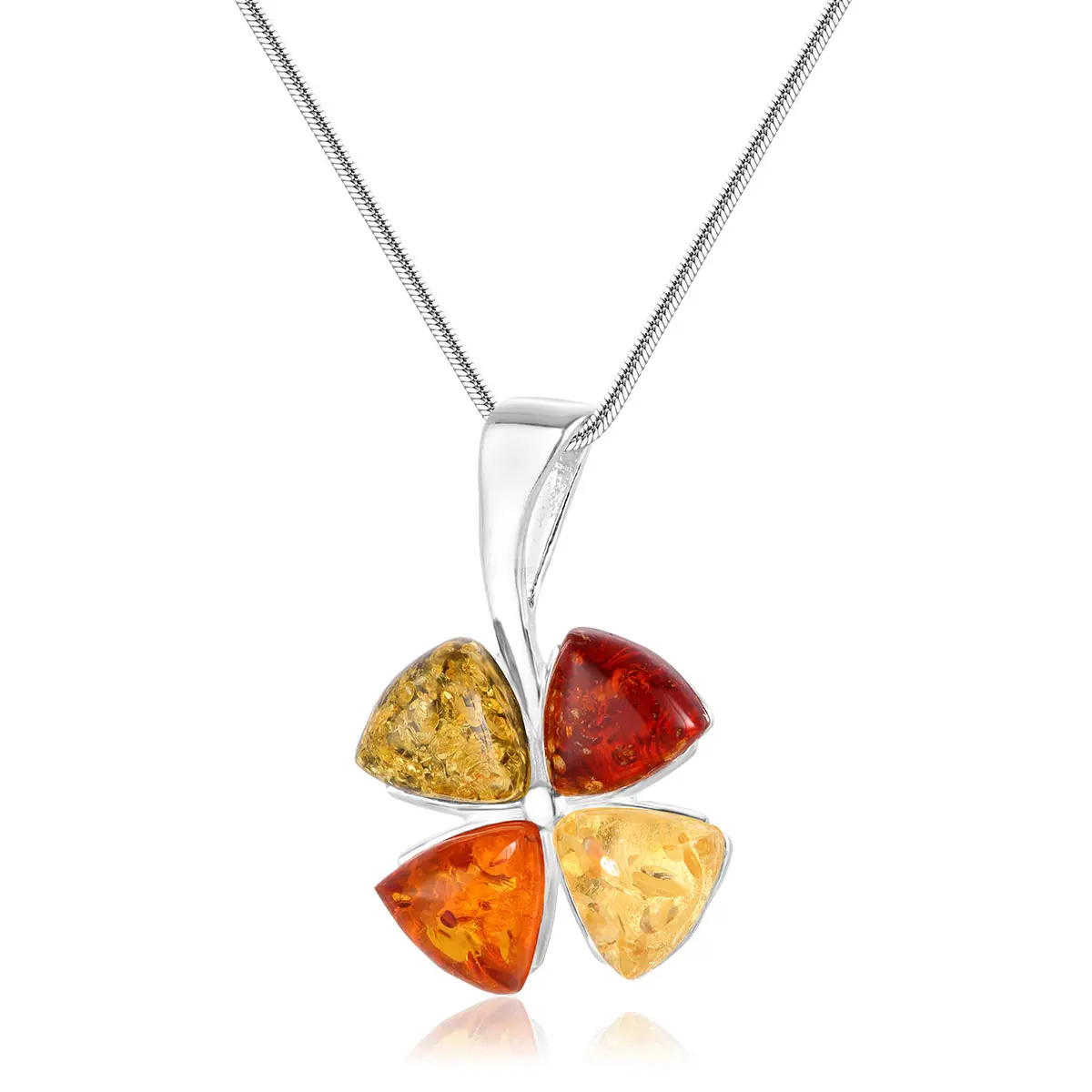 Wisiorek srebrny koniczynka z kolorowym bursztynem Clover