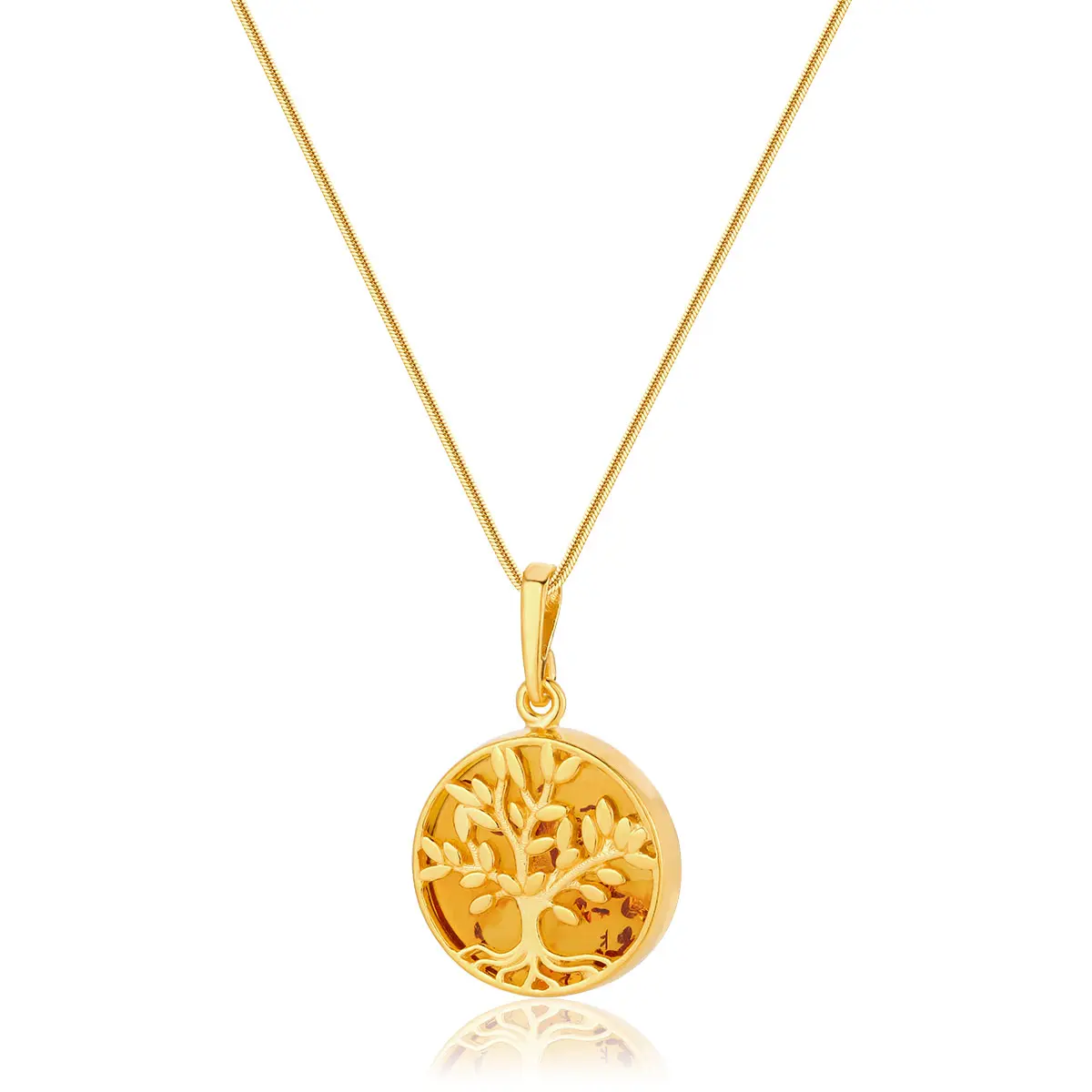 Wisiorek srebrny pozłacany drzewo oliwne z bursztynem Olive Tree
