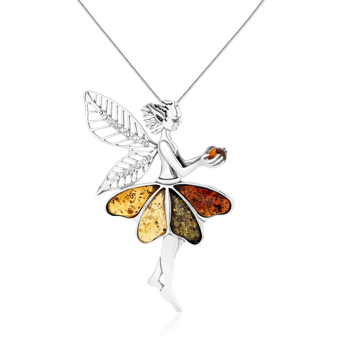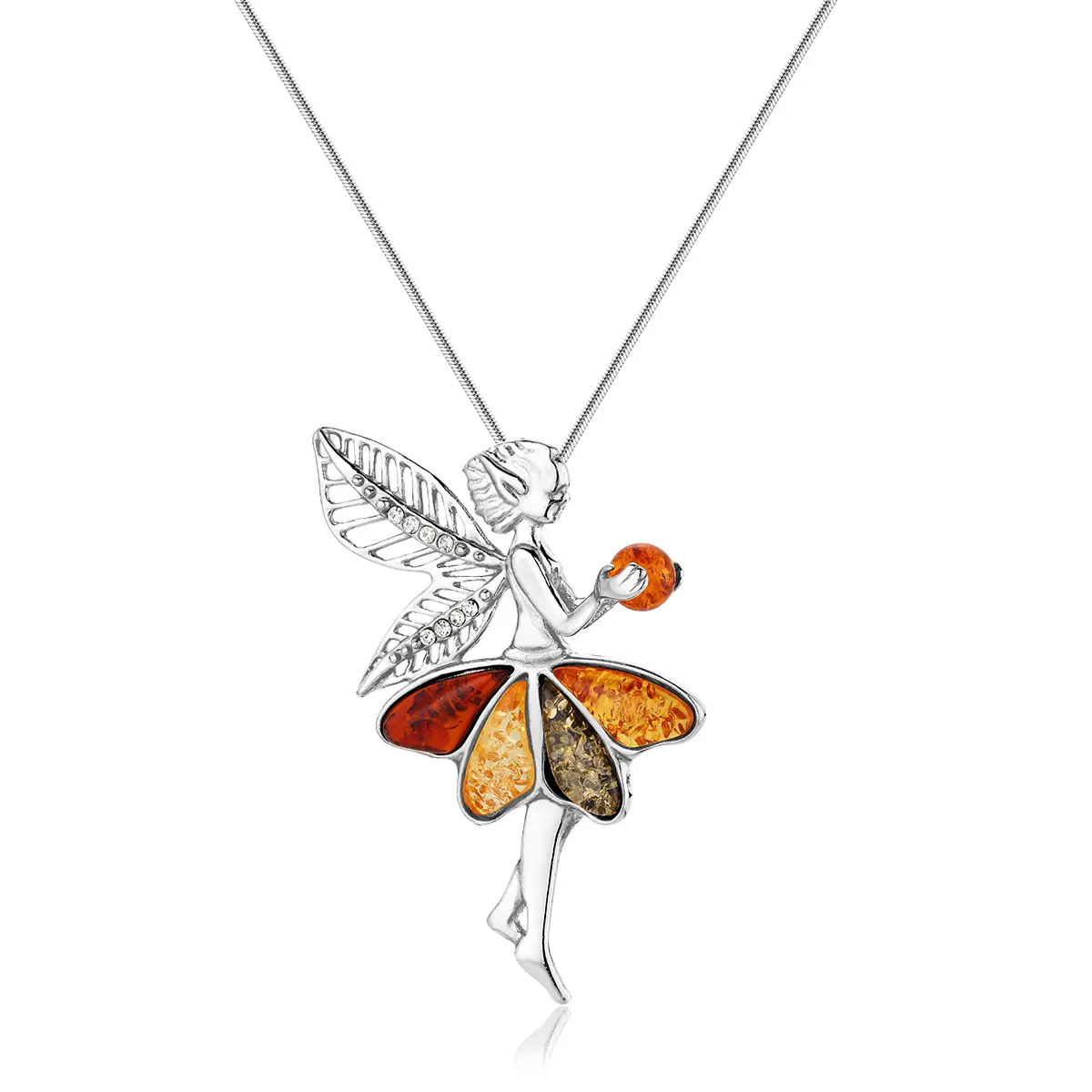 Zawieszka srebrna elf z kolorowym bursztynem Tinker Bell