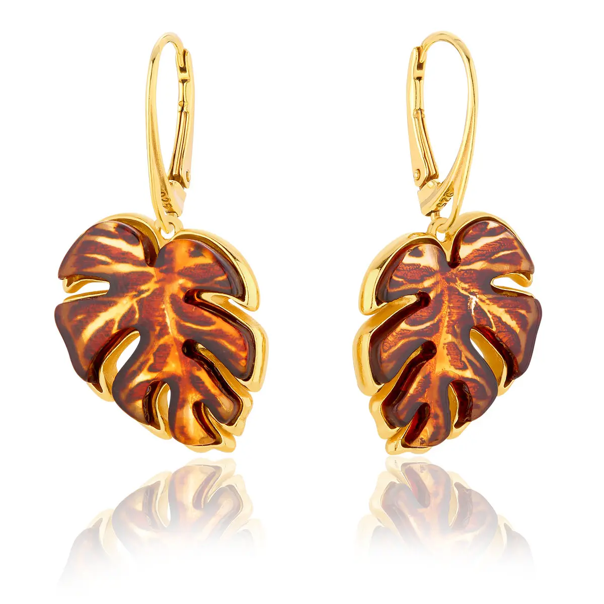 Zawieszka srebrna liść miłorzębu z bursztynem Ginkgo Leaf