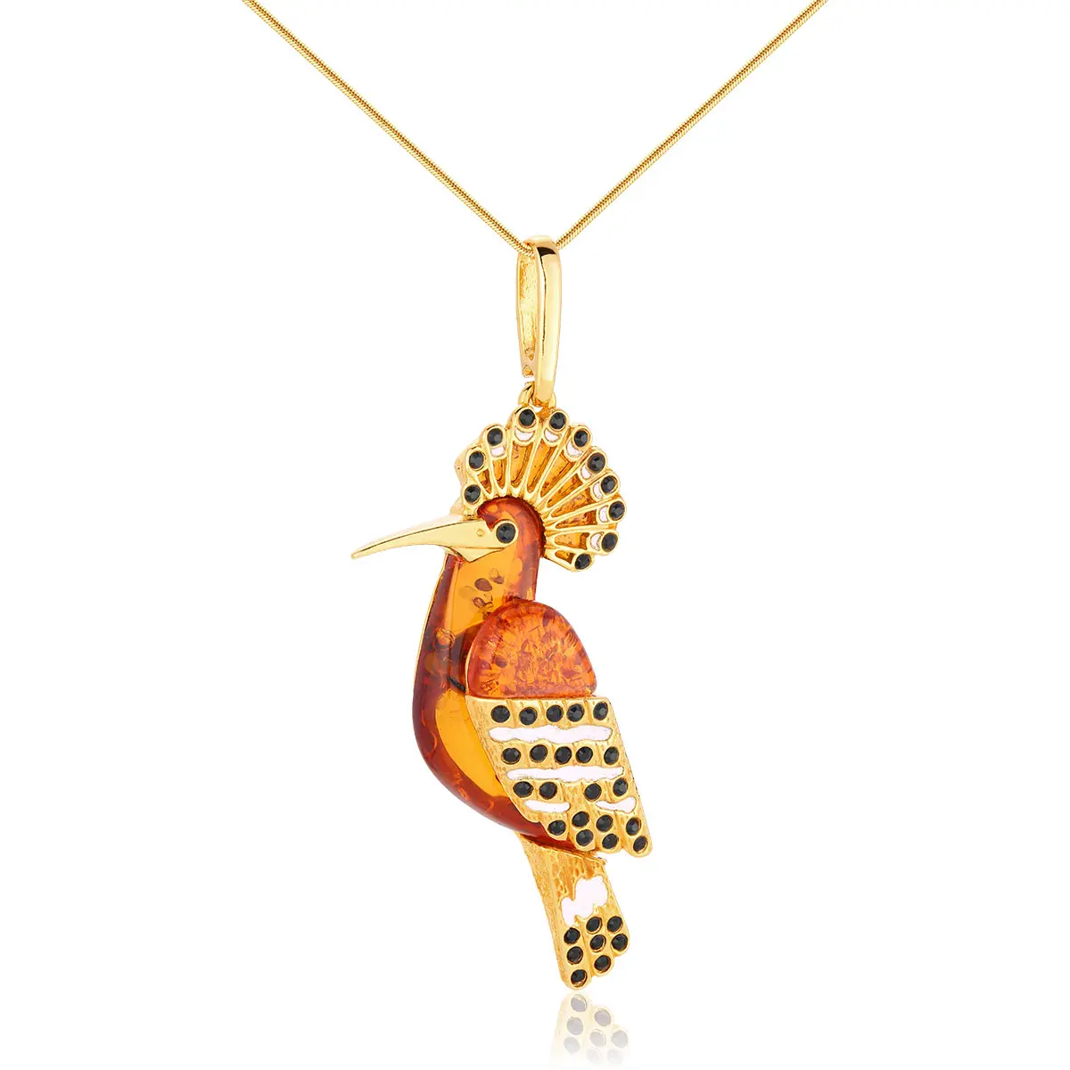 Zawieszka srebrna ptak muchołówka z bursztynem Flycatcher