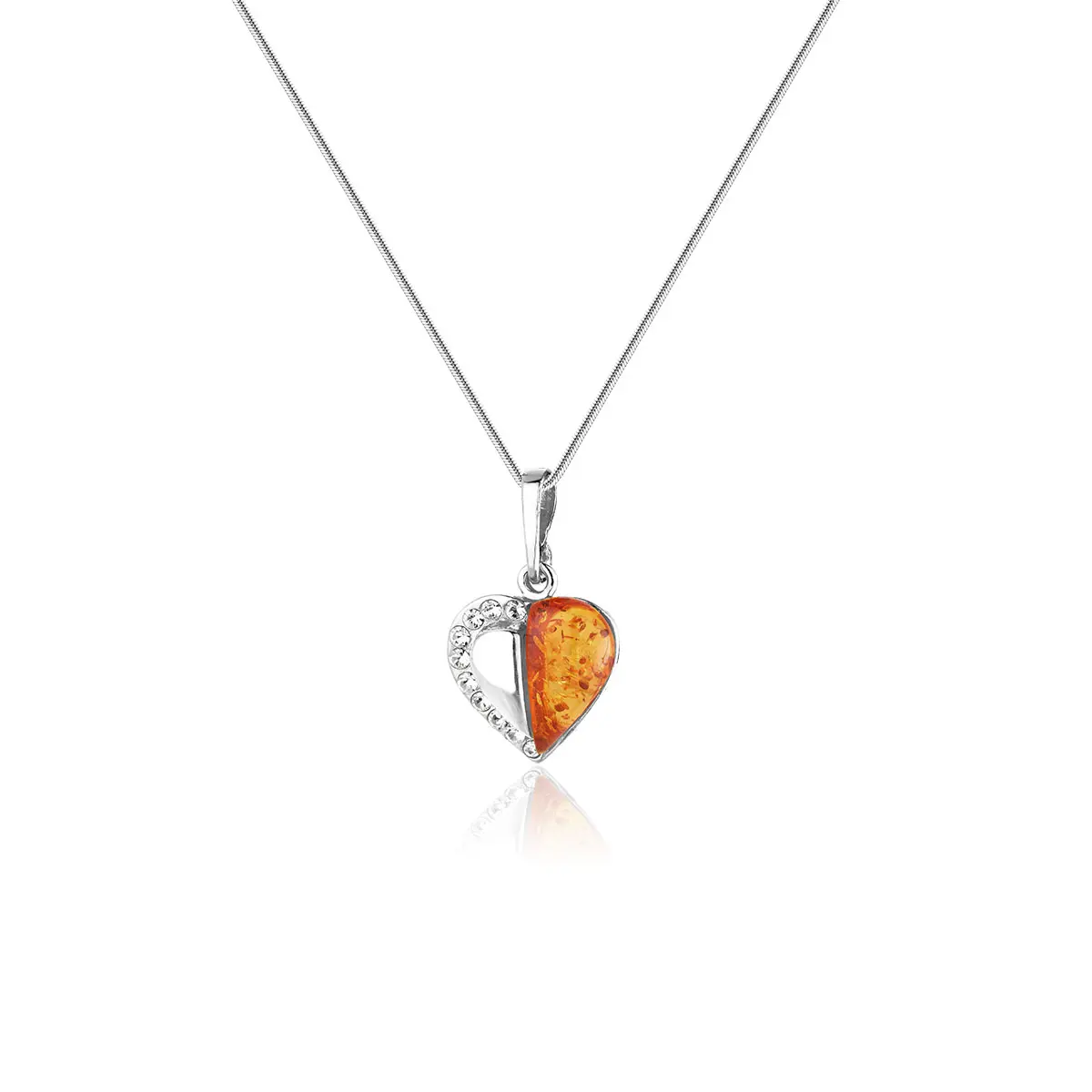 Zawieszka srebrna serce z koniakowym bursztynem Ariadna Heart
